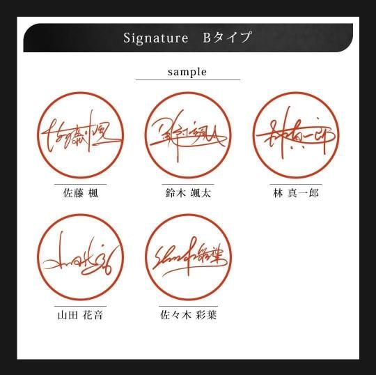 ・こちらの商品はsignature本体とお求めいただいた方のみご利用いただけるオプションです。 ※本サービスで作成したサインデザインの著作権は弊社デザイナーに帰属します。 ご注文者様による 個人利用の範囲(印鑑としての使用、電子契約書やプレゼン資料、名刺、SNSアイコン、チラシやポスター等の印刷物)については自由にご利用いただけます。 ただし、以下の行為は固くお断りいたします。 ・商品化や販売を目的とした利用(グッズ制作・営利配布など) ・デザインデータの複製・改変・再配布、第三者への譲渡 ・商標登録・著作権登録などの権利化行為 ・公序良俗に反する利用、その他当サービスの利用目的を逸脱した使用